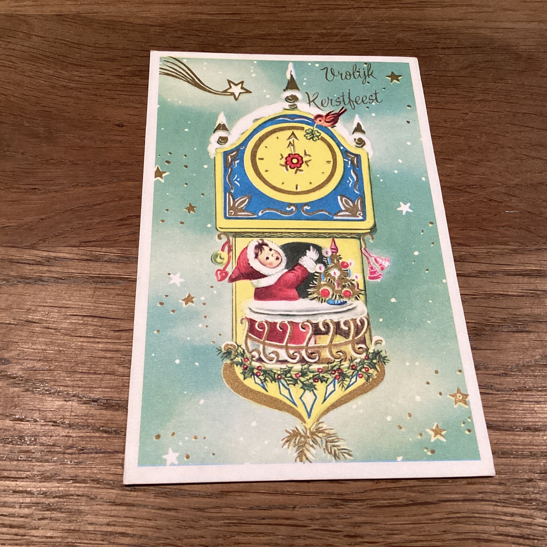 Antieke kerstkaart, met klok