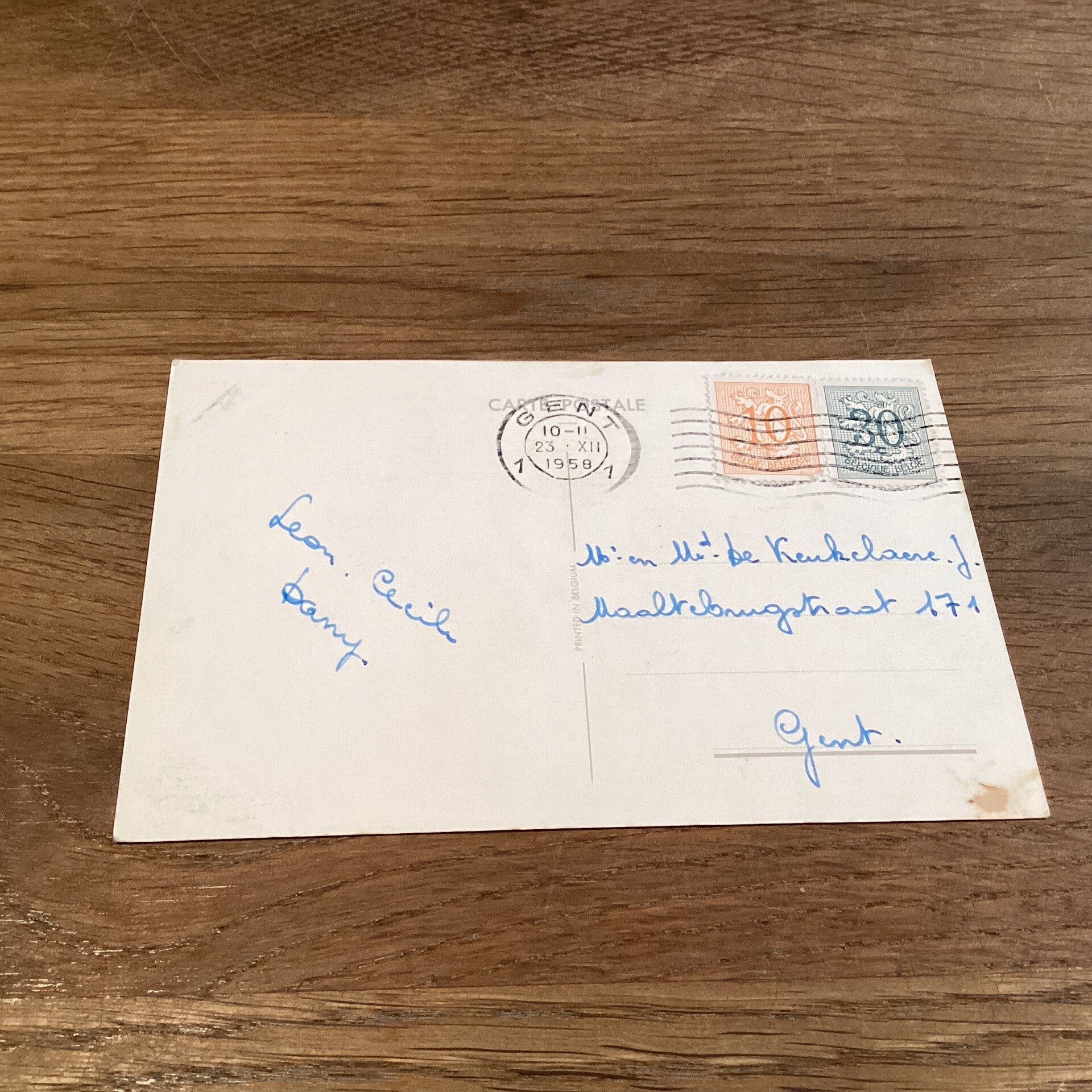 Antieke kerstkaart, vrolijk kerstfeest uit 1958