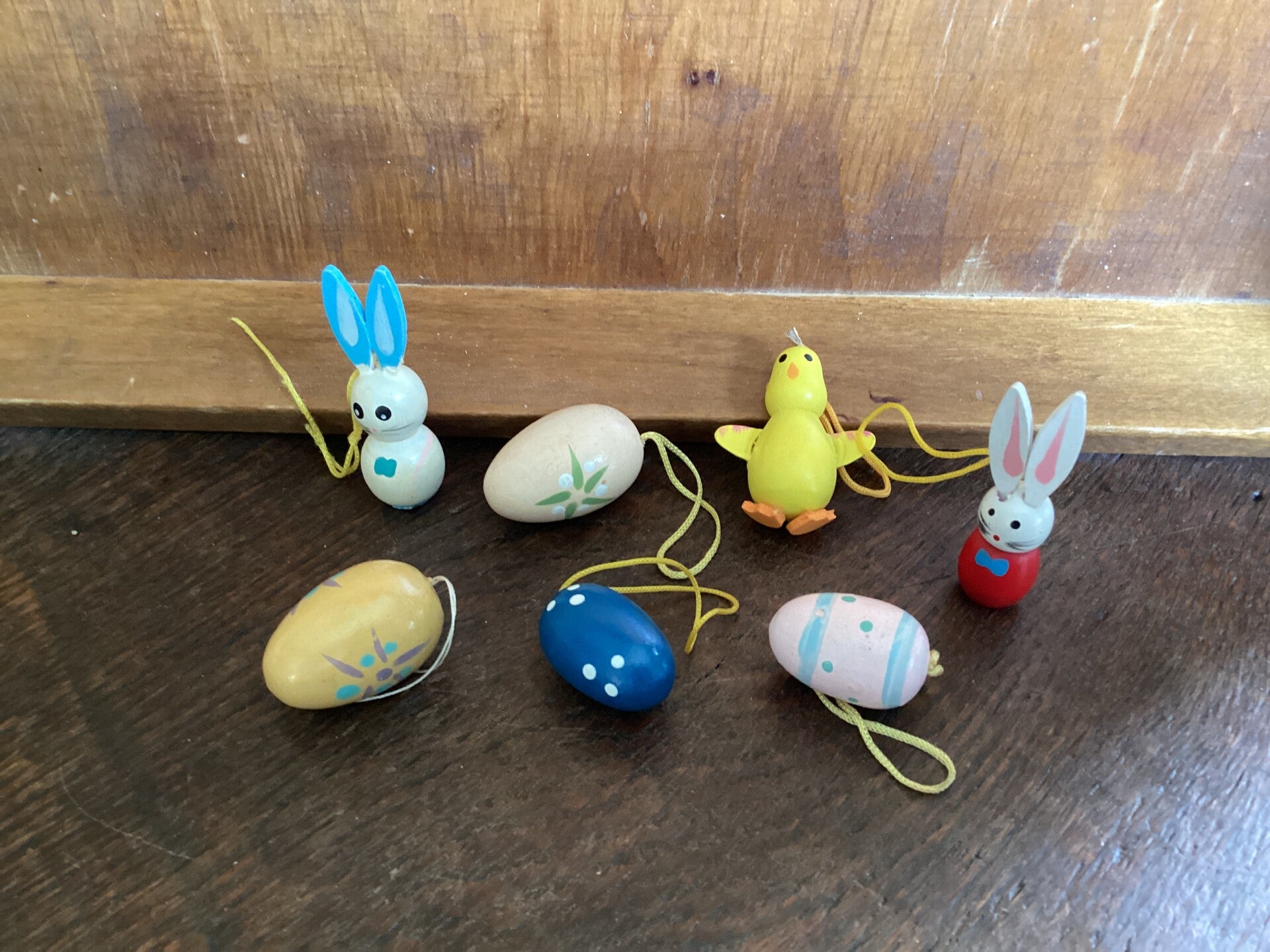 Set Y met vintage houten paastakfiguren 2-5 cm