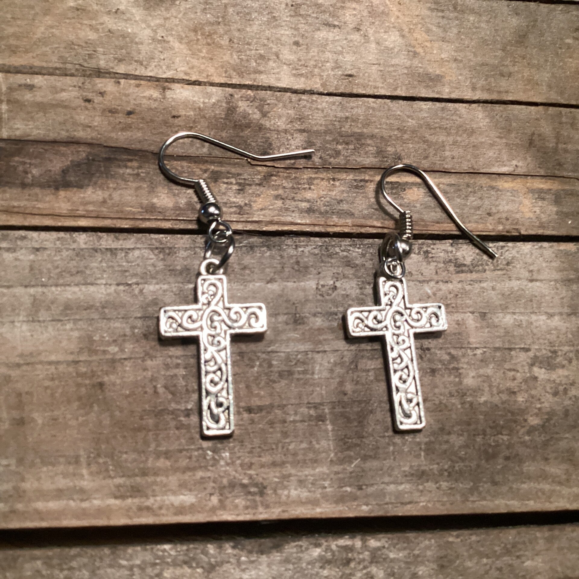 Vintage oorbellen bewerkt recht kruis 25 mm
