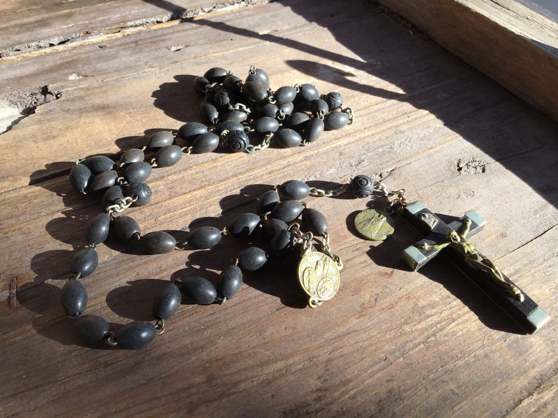 Antieke rozenkrans 50-60 cm pauzen, lokeren zwarte kralen