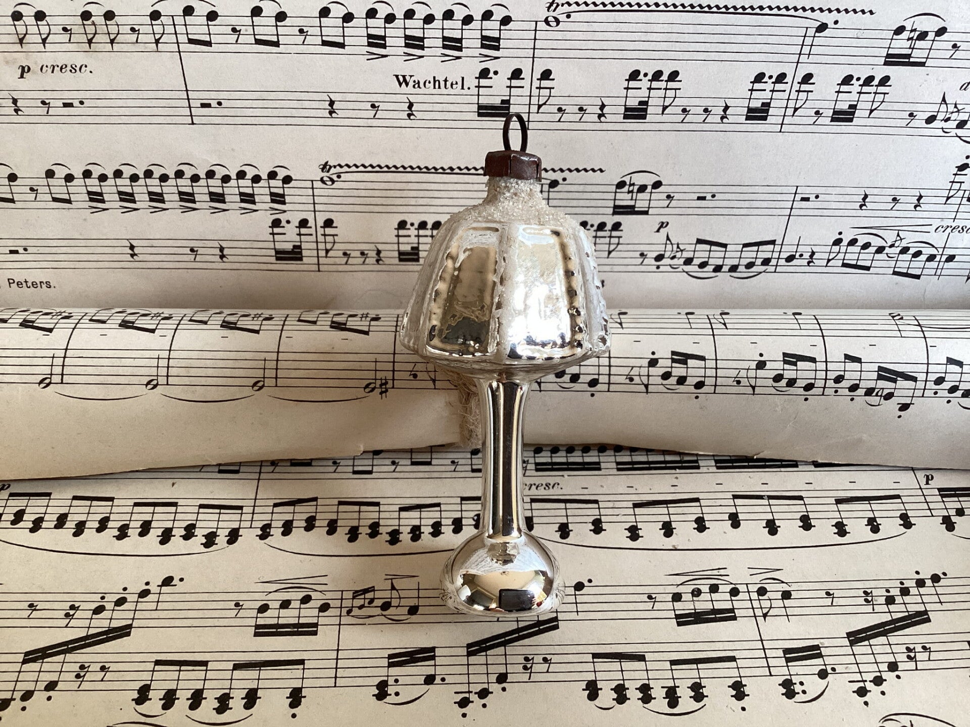 Antieke kerstbal lampion zilver gesuikerd 8 cm