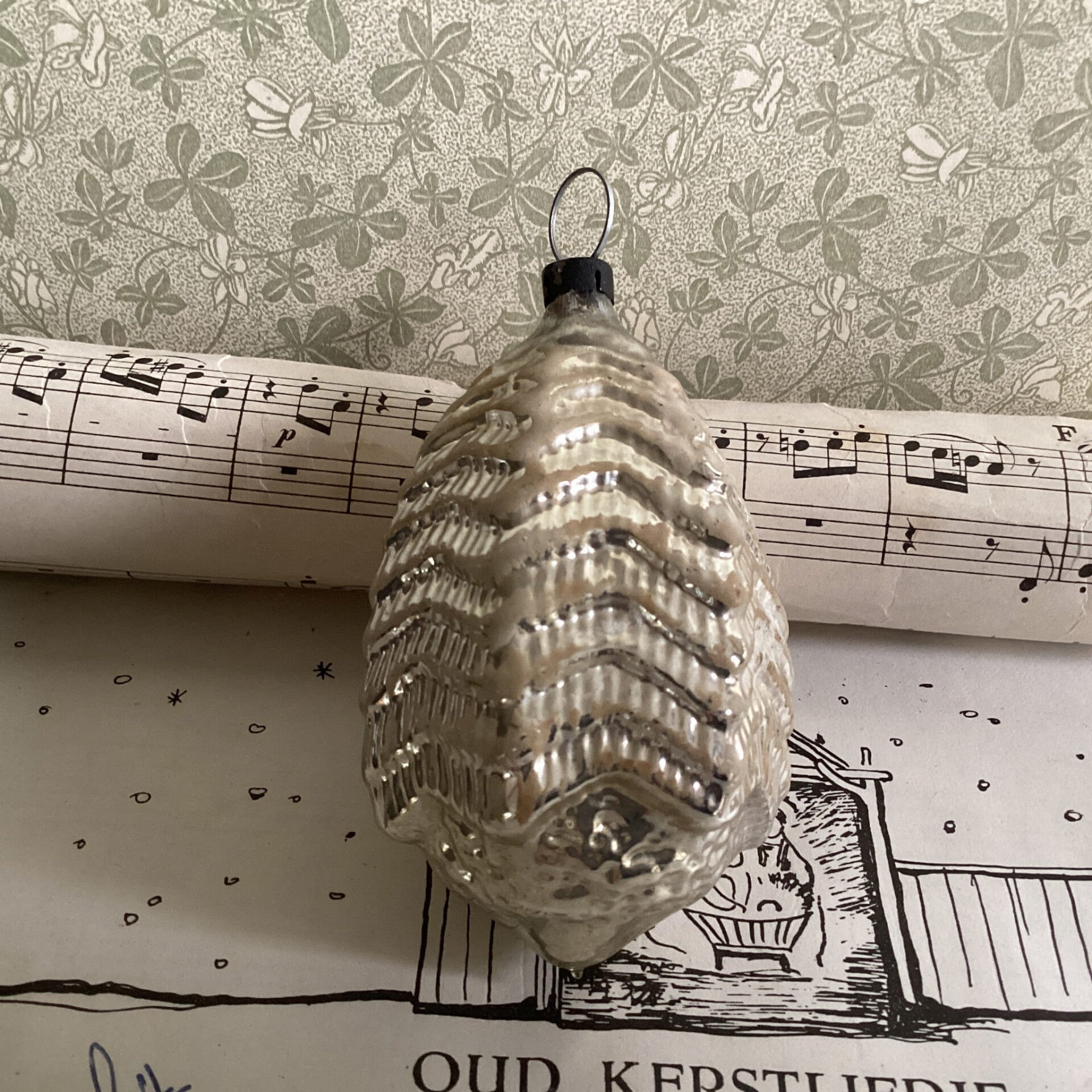 Antieke kerstbal kerstboom 8x5 cm rond 1900, mooi!