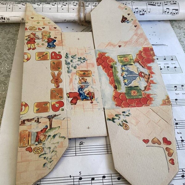 Oud vouwdoosje kerstkoekjes 12x8x6 cm