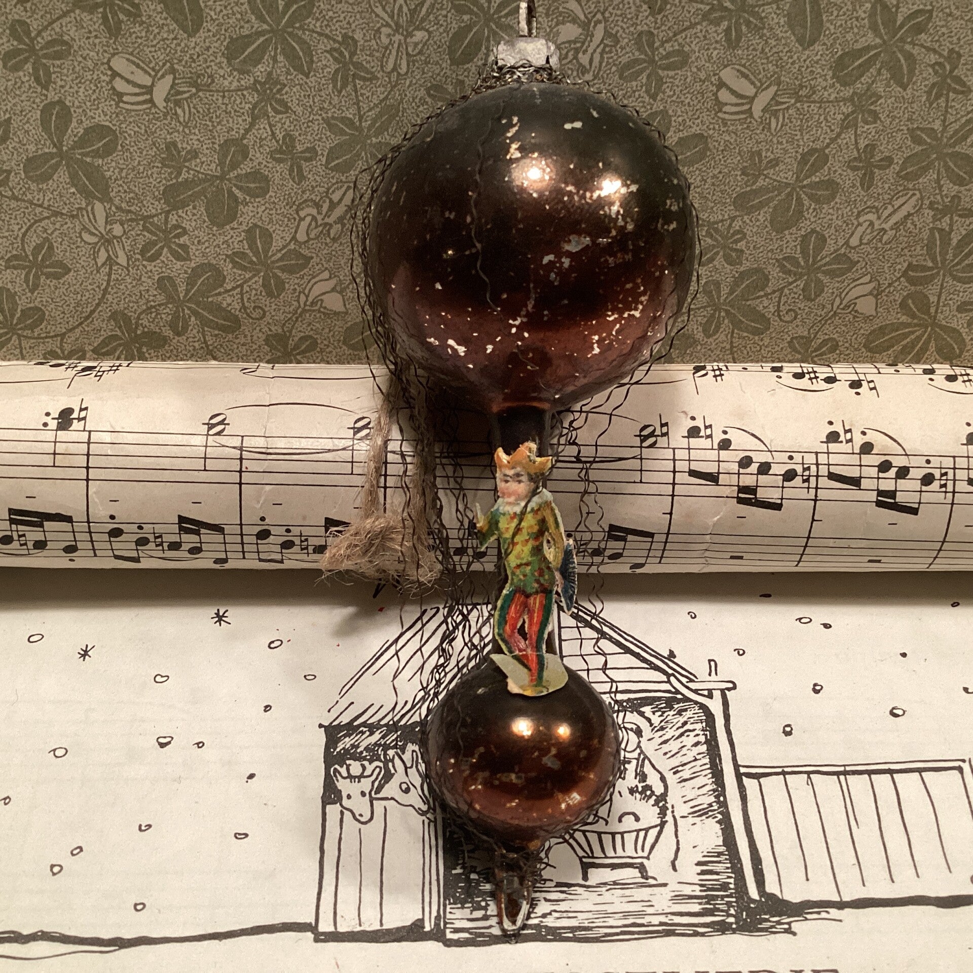 Antieke kerstbal luchtballon groen met fillegraindraad harlekijn 12 cm
