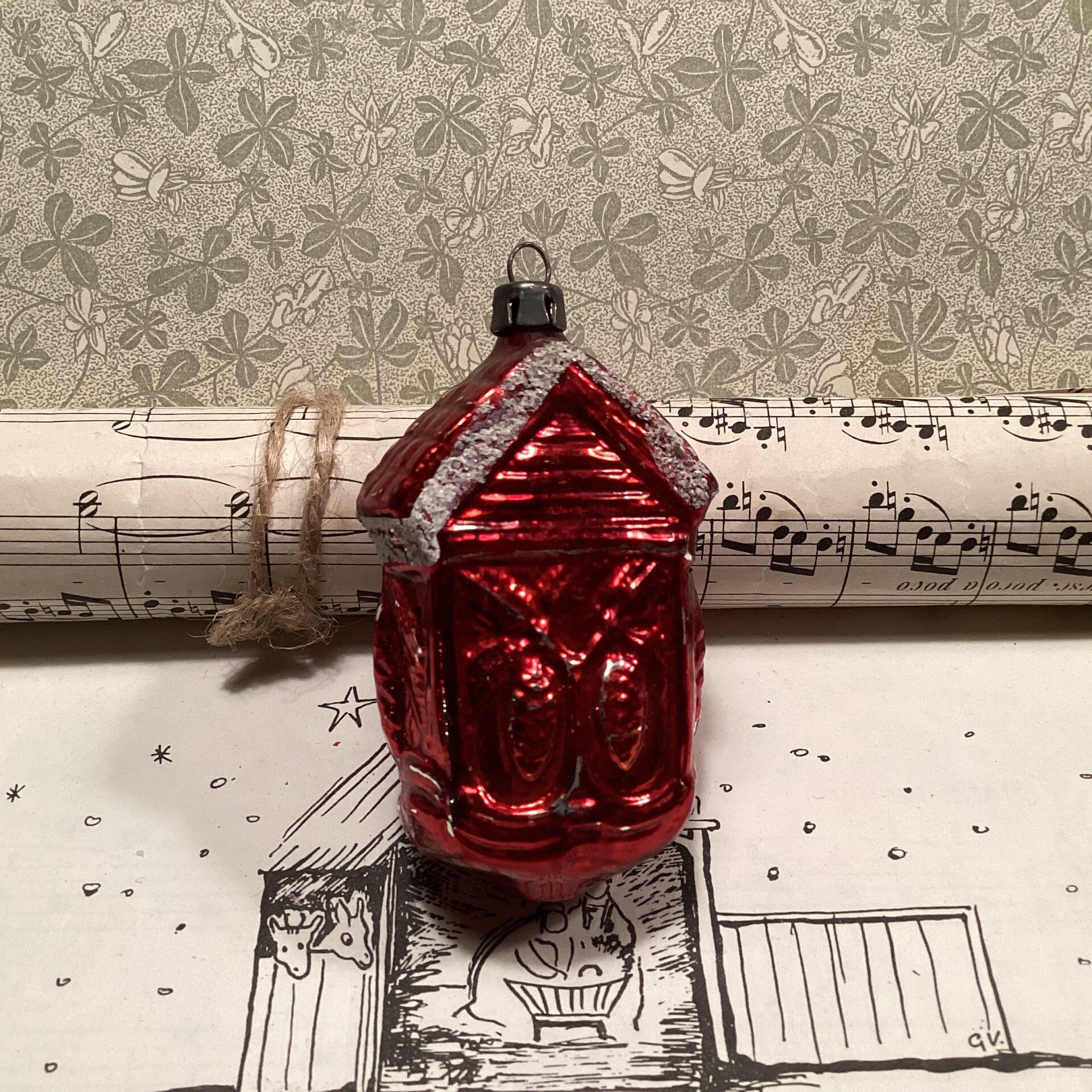 Antieke kerstbal klok rood 8 cm gesuikerde randen, mooi!