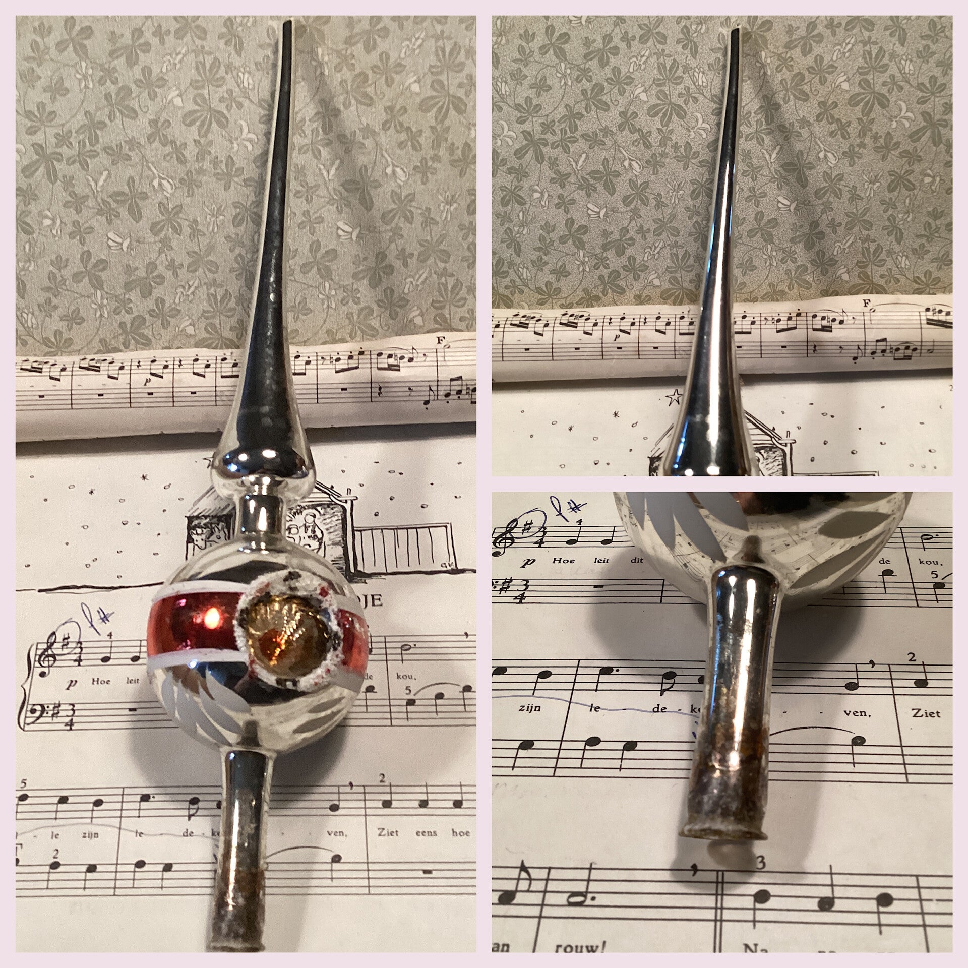 Antieke deuk piek 3 deuken rode band, groen gele kernen 30 cm