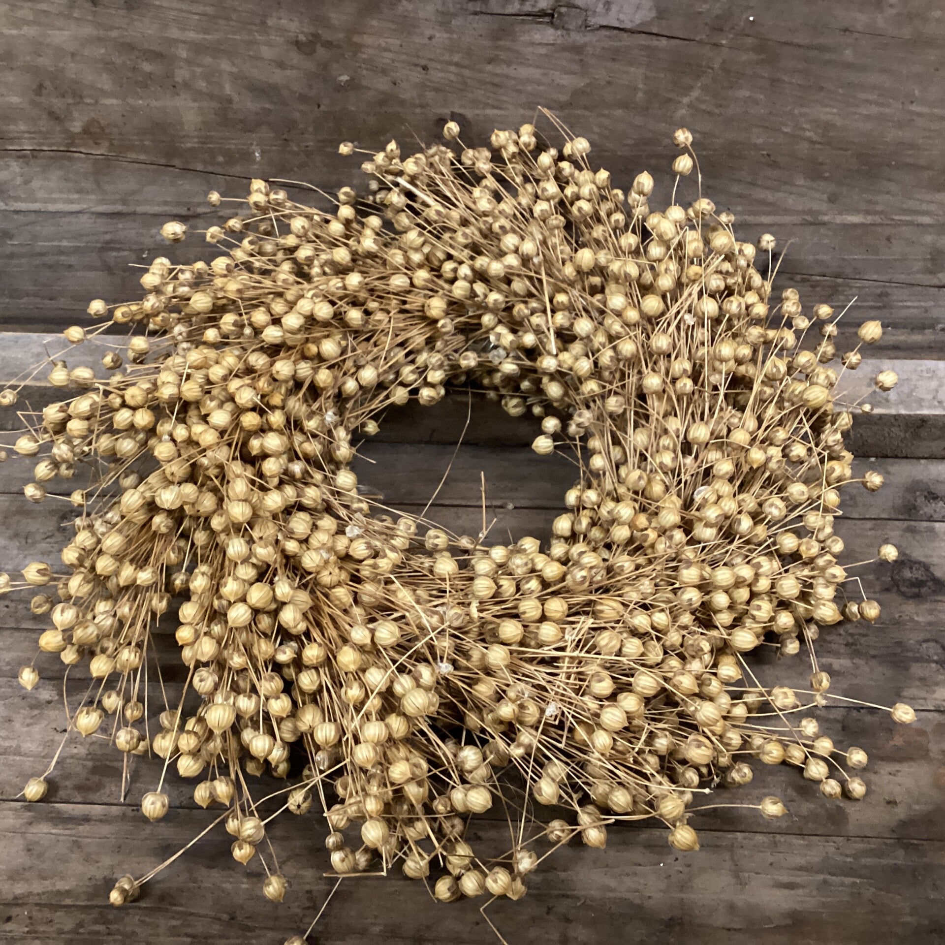 Zeer fraaie gedroogde krans beige geel van vlas 25 cm