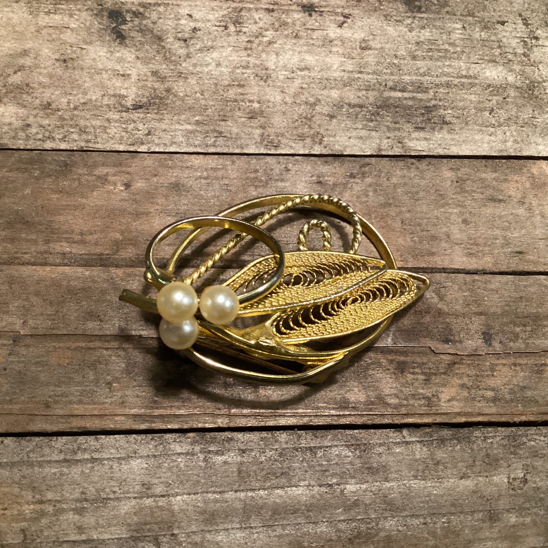 Mooie vintage engelse broche filligrain met parels 4,5x3,5 cm